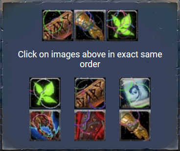 To prevent using bots there is a robot check before starting the quest. When the player attempts to start the quest, he will have to click on a certain combination of runes. If player does that correctly, the quest starts. Otherwise, the player has to restart the sequence, and to start the quest again.